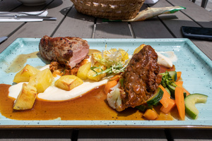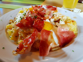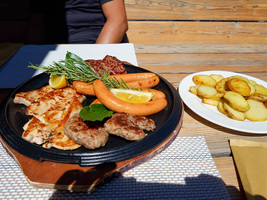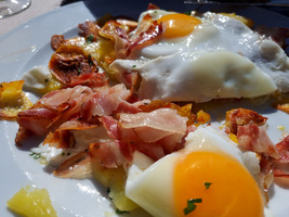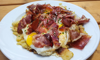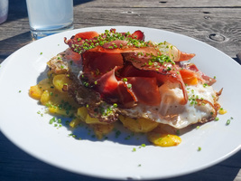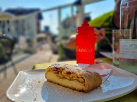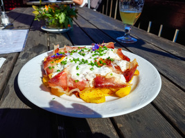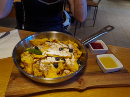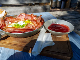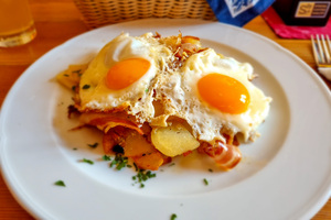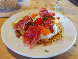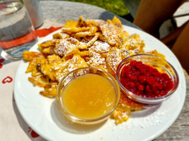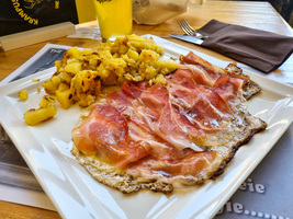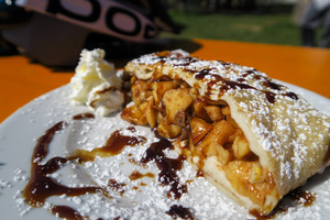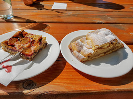Scatti di pietanze mangiate durante giri in bici. La fa da padrone lo Spiegeleier (uova patate e speck), seguito da omellette e kaiserschmarren (sempre uova sono), carne e canederli, carne da sola, affettati e formaggi, qualche primo, e molti strudel... Le Birre e i Radler non li ho messi, sarebbero troppi :-)