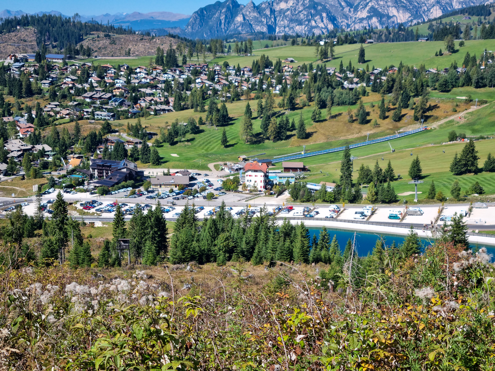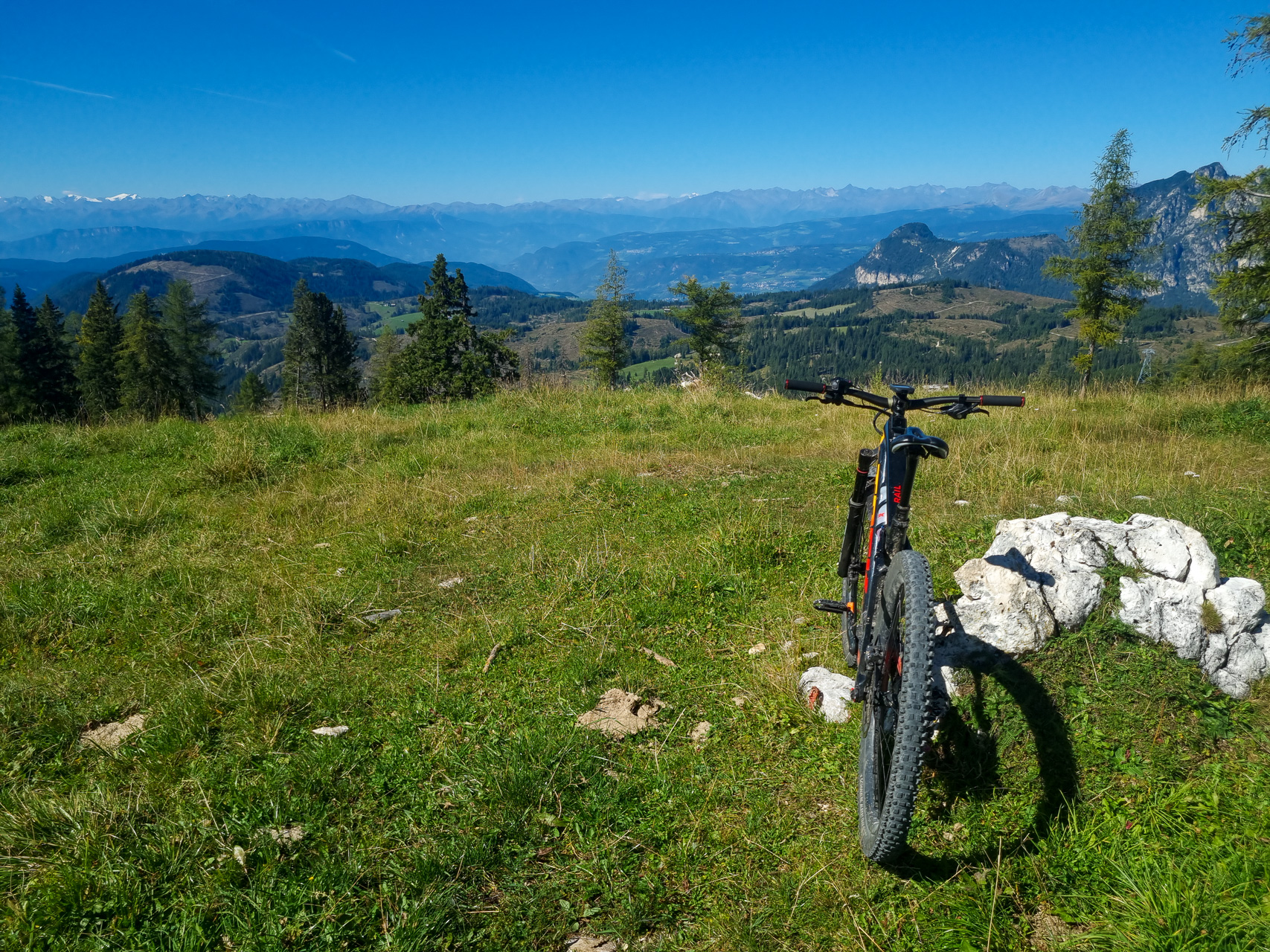 Molto bello l'1C in salita per arrivare al passo Nigra (occhio che sembra un trail da downhill, ma c'è buona visibilità se scende qualcuno) e bellissimo il 552 S2 dalla intermedia del Paolina a Passo Costalunga. Divertente incontro di una signora che mi chiede "sa mica dove è il lago Mitterleger? Signora ci siamo esattamente in mezzo :-)" (è pieno solo in Maggio). Lago di Carezza anche molto secco e unico posto "affollato" (alla Masarè ho mangiato quasi da solo) e per finire il pezzo più "tricky" e divertente del 10A che scende a Nova Levante. Quanto è bello girare a 1900mt in autunno in maniche corte e soprattutto con pochissima gente in giro (un mese fa questo giro sarebbe stato improponibile)?!
