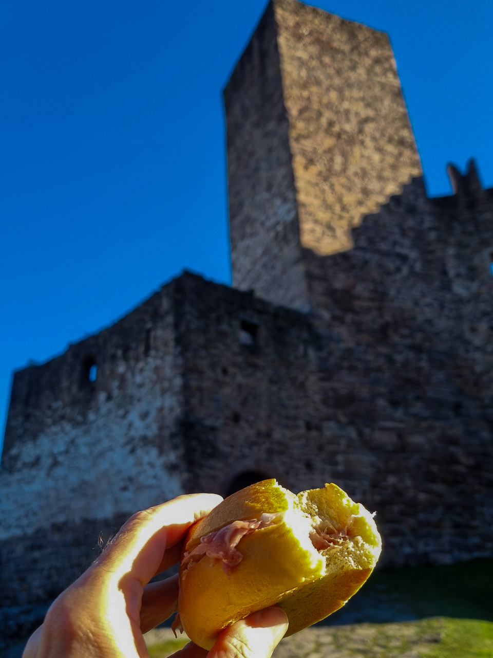 L'obiettivo era quello di due pause pranzo ai due castelli Boymont e Hocheppan, ma al primo la locanda era aperta e giustamente vietano il pranzo al sacco. Bei tempi comunque quelli del Covid quando ci andavo spesso e non c'era anima viva, oggi sembrava Ferragosto! Occhio che la parte finale del Burgenweg per il Boymont non è per nulla facile, io non sono mai riuscito a farlo tutto in sella.