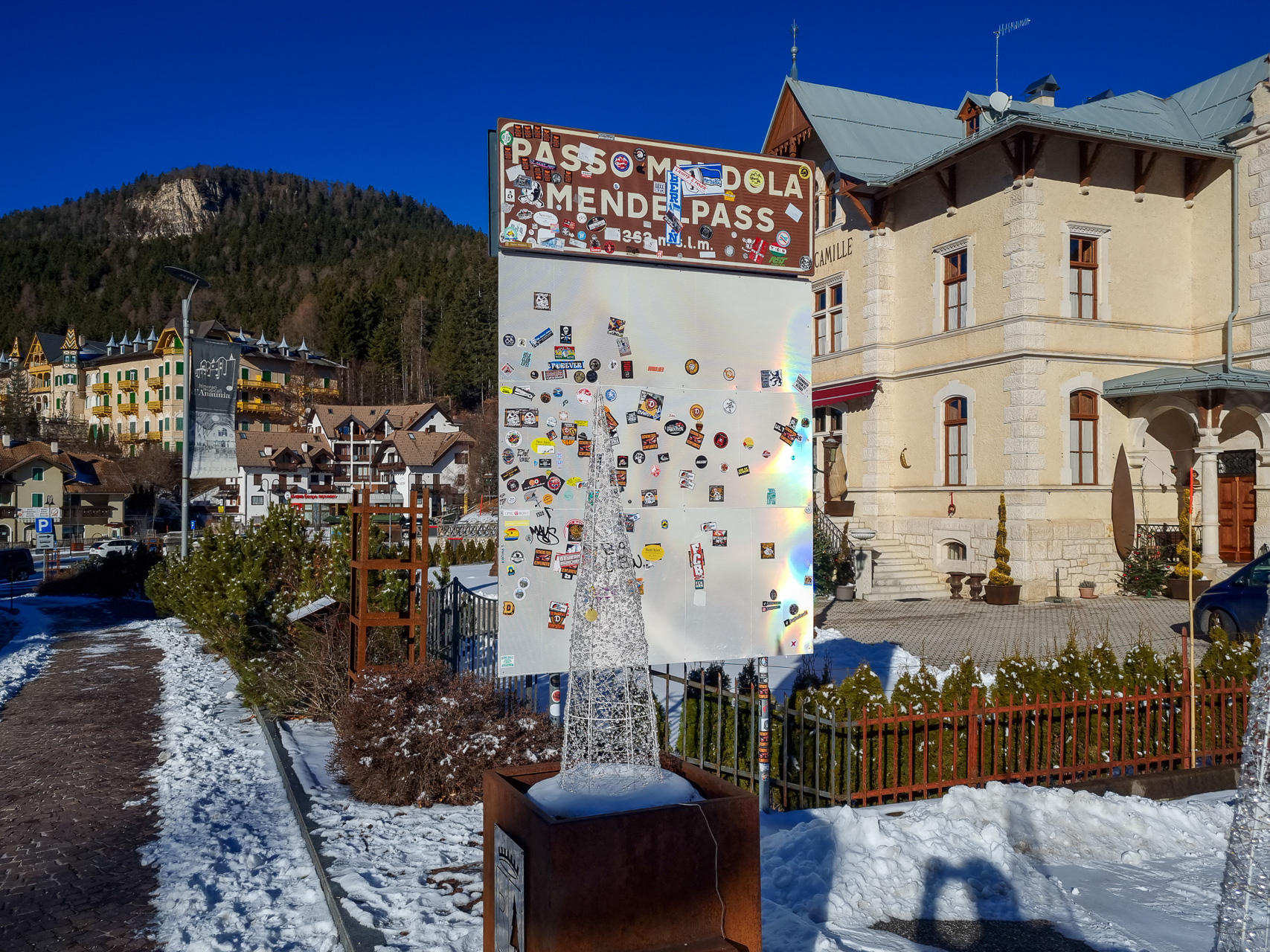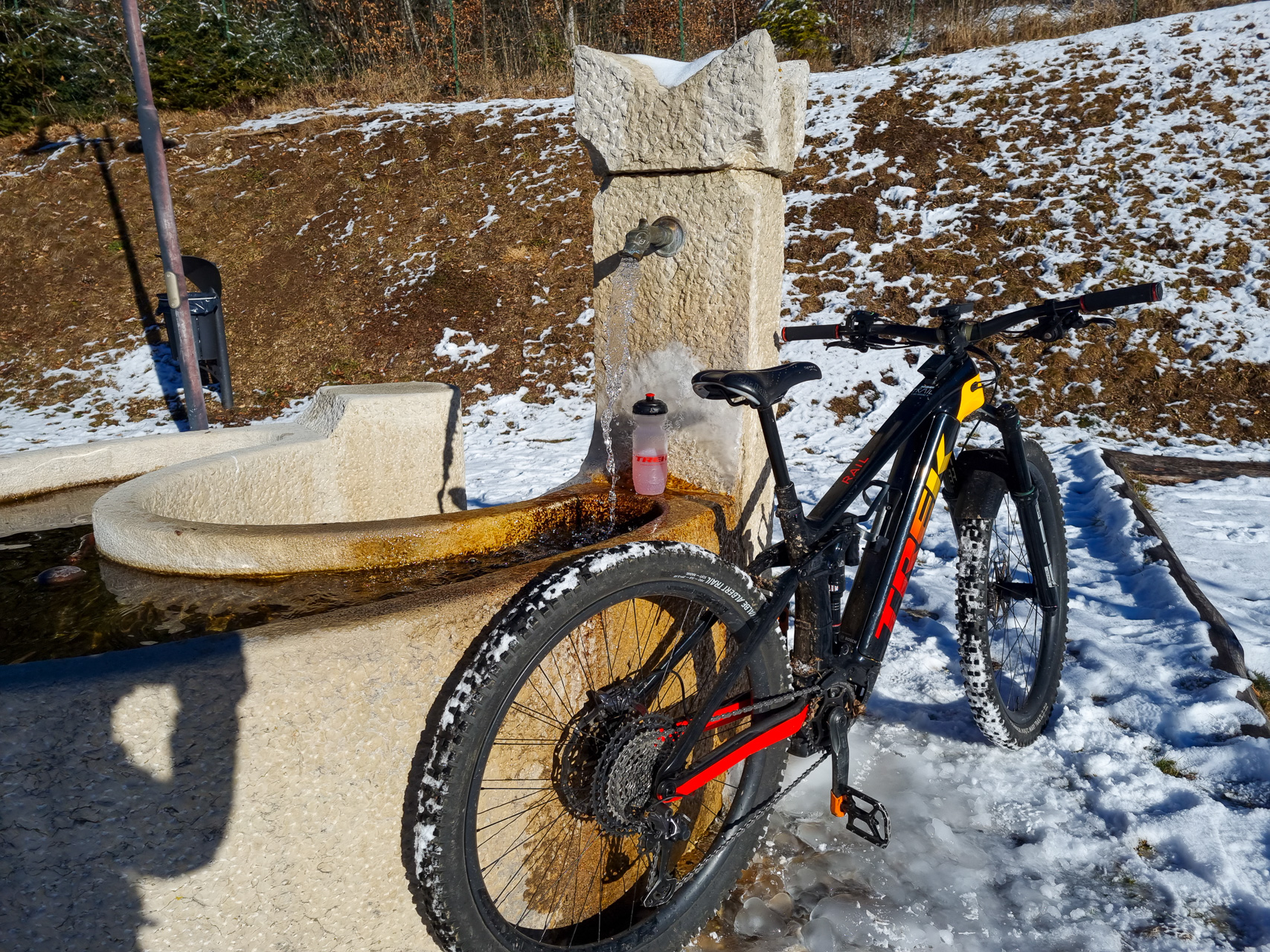 Con due giorni di ritardo rispetto al canonico 24, sono salito alla Mendola pedalando tra piacevoli ricordi (il Trofeo Bonatti che si svolgeva sempre alla Vigilia) e altri molto meno (l'amico Mario che proprio quel giorno si era operato e ci aveva illusi). Due deviazioni alla partenza della seggiovia Roen (per un'immersione linguistica balcanica) e a casa di un amico a Villini. Discesa praticamente completa, salvo il primissimo pezzo (giáz) e i gradini a tronchi che ho immaginato molto slippery... Fontane tutte incredibilmente ancora funzionanti.