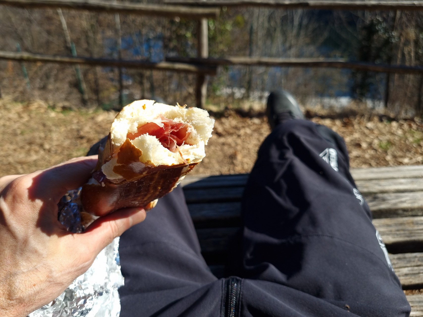 Un paio di sackgasse esplorate (la prima lo era, la seconda invece è un hidden-trail) e poi un buon panino sotto un sole primaverile sulle chaise longue che dominano il lago